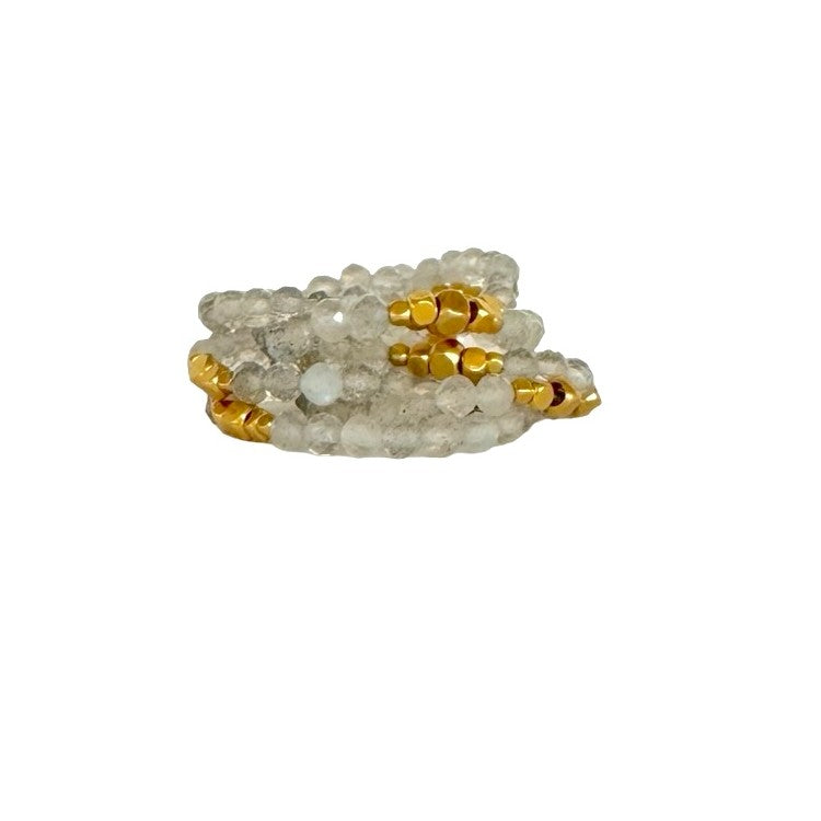 The Lilou ring features multiple strands of genuine gemstone beads woven together in a refined design.