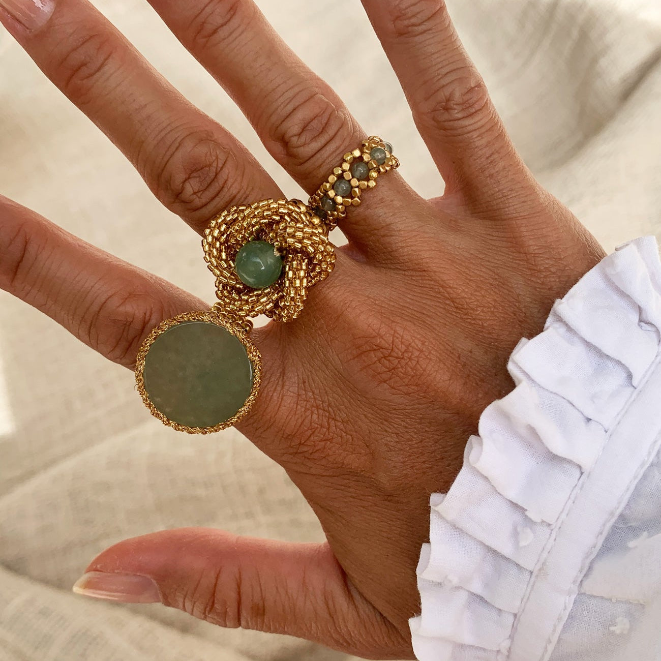 This handmade adjustable gold ring with a large natural gemstone is a true statement piece. Unique, stylish, and timeless, each ring is one of a kind — perfect for those who love bold gemstone rings that stand out.